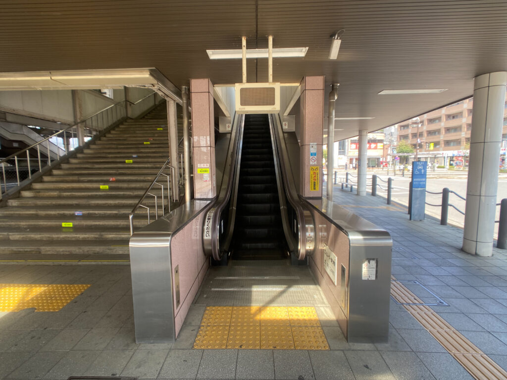 このエスカレーターは、春原芽衣(CV.田村ゆかり)が立っているカットで有名。本記事ではアニメの切り取り画像は掲載しない方針なので、ネットで調べたり、アニメで確認してみて欲しい。