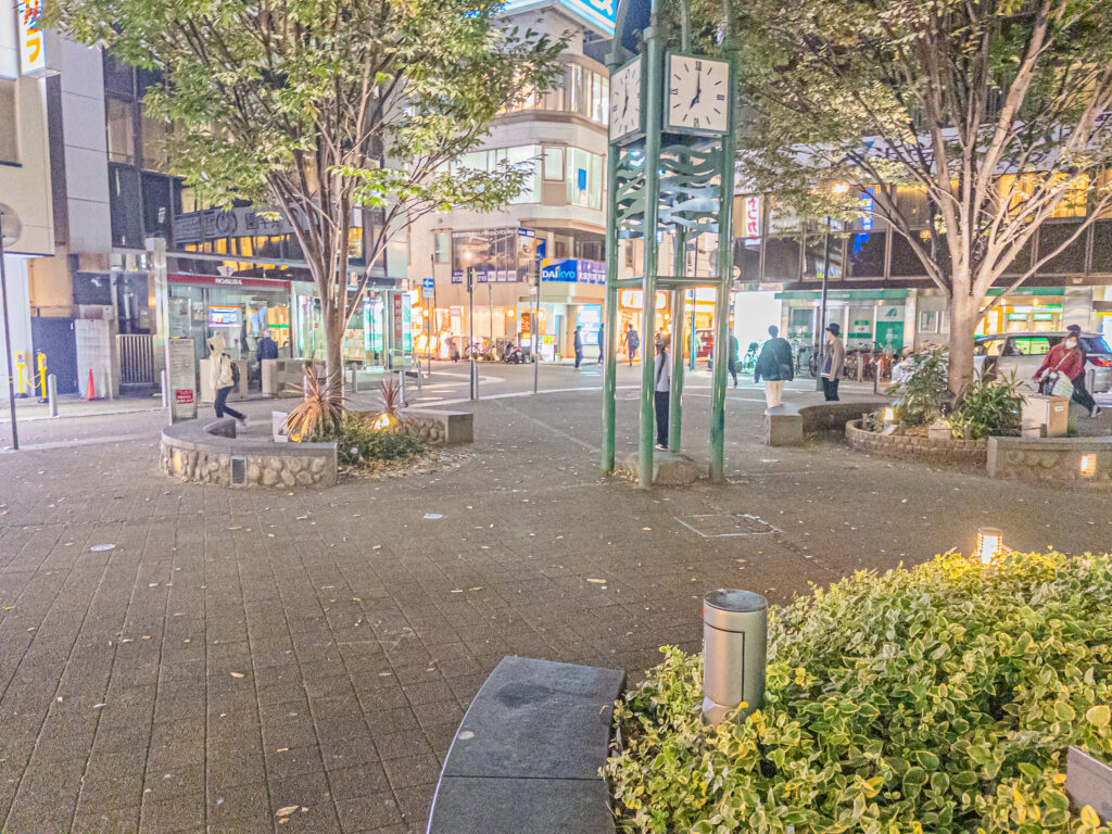 夜の西宮北口駅も撮影。『エンドレスエイト』でSOS団がループに気づくのも、夜の西宮北口駅前だった。